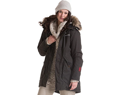Een lange gevoerde parka voor vrouwen, met een klassieke vleiende pasvorm.